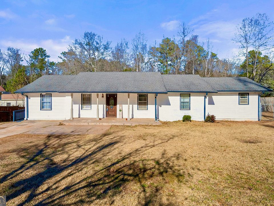 Immaculate & stunning ranch-style retreat offering space, privacy, and modern elegance! Nestled on a generous lot, this beautifully updated home features a charming rocking-chair front porch, setting the stage for serene mornings and relaxing evenings. Inside, you'll find a spacious and open floor plan, including a sunken family room with a cozy fireplace, perfect for gatherings. The gourmet kitchen boasts sleek granite countertops, stainless steel appliances, and ample cabinetry, flowing seamlessly into a bright breakfast area and a formal dining room fit for entertaining. The oversized owner's suite is a true sanctuary, featuring a private sitting area, a spa-like bath with a soaking tub and separate shower, and a huge walk-in closet. Additional bedrooms are generously sized, with a flexible bonus room ideal for a home office, gym, or playroom. Step outside to your private oasis, where a sparkling in-ground pool and spacious deck create the ultimate setting for relaxation and outdoor fun. With ample storage, a large fenced backyard, and modern upgrades throughout, this home is a rare find. Don't miss this incredible opportunity!