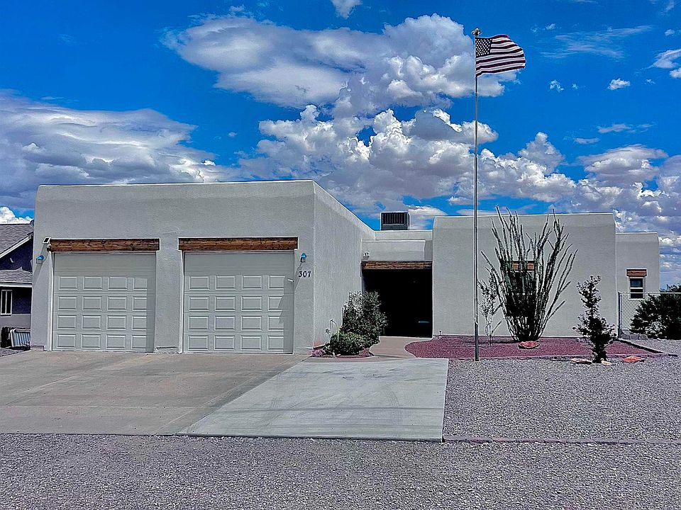 ASSUMABLE 2.75% VA Loan available. Beautiful well maintained home just minutes from Elephant Butte Lake or Sierra del Rio Golf Course. 3 bedroom 2.5 bath custom built home in 2006. Sits on .30 acre lot with plenty of parking & space for all your toys. Open floor plan. Custom built cabinets throughout with solid surface countertops. 9' ceilings. Tile and carpet flooring. Furnishings negotiable. Fenced maintenance free yard with 12 x 20 shed in back. Don't miss out on this deal!
