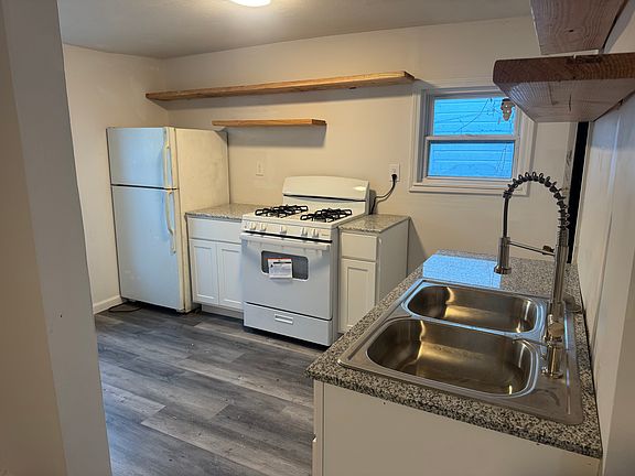 JUST FINISHED! Completely newly renovated 2 bedroom 1 bath single family home for rent. Absolutely everything new and updated! Brand new kitchen cabinets granite, appliances, windows, flooring, bathroom, high efficiency furnace (1 week old) plumbing, paint and so much more. comes with Whirlpool stackable washer/dryer. Off street private parking and trash removal included.
