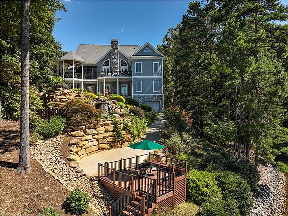 Welcome to your private, gated Lake Keowee oasis! Exceptional lakefront home in the quaint Mountain View Pointe subdivision. This custom built, one-owner home offers wonderful lake views, open floor plan, 6-bedrooms, 5 full baths, two 1/2 baths, and large private dock with boat lift. Watch gorgeous sunsets from the multiple seating areas along the 800 ft. main floor, wrap around Brazilian hardwood deck that includes a 150 ft. screened porch. Additional lower-level of outside living spaces designed for entertaining. The lower-level covered porch area opens to a stack stone wood burning firepit and terraced stone water feature flowing to a cascading waterfall. The golf cart path provides easy access to the 15' x 12' Brazilian hardwood platform deck with steps leading to the private covered dock with a 6000 lb. Hydro-Hoist boat lift. Approx. 200 ft of Rip rapped shoreline. Additional storage garage on the lower level provides plenty of storage for lake toys and the golf cart.