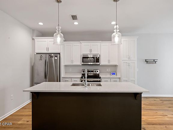 This affordable 3 bedroom, 2.5 bathroom home is located in a desirable community. You'll love the convenience of shopping, schools, dining and Tyndall Air Force Base. Highlights include a garage, metal roof, security system, high end luxury vinyl flooring throughout the first floor and the laundry room. The open kitchen has stainless steel appliances, quartz countertops, and plenty of cabinet space. Upstairs the large master bedroom with tray ceilings has a private master bathroom that features a double vanity, quartz countertops, and a shower/tub combo. You'll find the other two rooms provide plenty of space for sleep, study and guests. Keeping convenience in mind this home provides a full size laundry room on the same floor as the bedrooms and the half bath is on the first floor convenient for guests. This home is a must see! Call for additional information or to schedule your showing.
