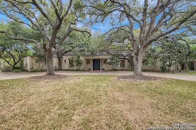 Unique opportunity to reside at one of San Antonio's most elite addresses. This beautiful Terrill Hills one-story home is situated on a .86 acre tree-covered lot. Custom features include grand foyer, multiple living areas leading out to a large veranda overlooking a lush private backyard. Generous room sizes and quality construction beyond measure. Elegant wood-paneled study with fireplace and bar. Formal living, formal dining, light and open master suite opens to private patio, secondary master great for multi-generational living, large island kitchen overlooking family room and flex room off of garage is perfect for exercise or play/sports-watching and opens to back yard fire pit. 2-car garage and 2-car carport with additional parking for multiple cars. Tenant pays all utilities and yard care.