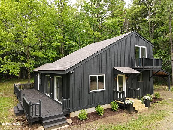 Come see this beautifully transformed, fully updated, extensively renovated, wow factor of a home! Breathe easy, on over 2 acres of land, as you savor the benefits of living in the Becket Estates. Luxuriate in the use of a private community pond, large deck, outdoor balcony and an abundance of natural light, throughout the home. Delight in the cultural events the Berkshires has to offer, as you are only minutes from Jacob's Pillow & Tanglewood. This lovely home offers new floors throughout, entire subfloor structure completely replaced, new vapor barrier in basement, newer roof & deck, 2 fully remodeled bathrooms, new appliances, loft style primary bedroom with walk in closet and full bath, all new interior & exterior painting. This charming home is move in and live your life ready