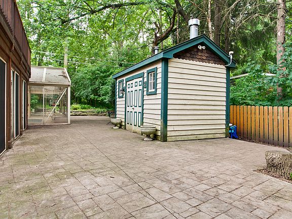 Fox River Grove's best kept secret is now available for sale! Much much larger than it looks (3771 sq ft!), located on nearly 2 acre private sanctuary & still just steps from downtown & Metra. Perfect layout for the multi-generational family, there are nicely updated kitchens w/ stainless steel appliances & granite countertops on each level. Main level features bright & airy spaces throughout w/ vaulted ceilings in almost every room. Spacious dining room overlooks majestic great room boasting a 20 ft stone wall with a second fireplace! Master bedroom has private bath, walk-in closet & sliders that open out to the deck. In the lower level is the in-law suite w/ 4th bedroom, kitchen, den, and private bath/laundry. Huge rec room walks out to your indoor pool w/ new mechanicals, great for year-round entertaining! Park-like setting in big backyard has playset, firepit, & countless fruit trees and perennials! FRG schools & CG High. Absolutely unique, you'll never see anything else like it!