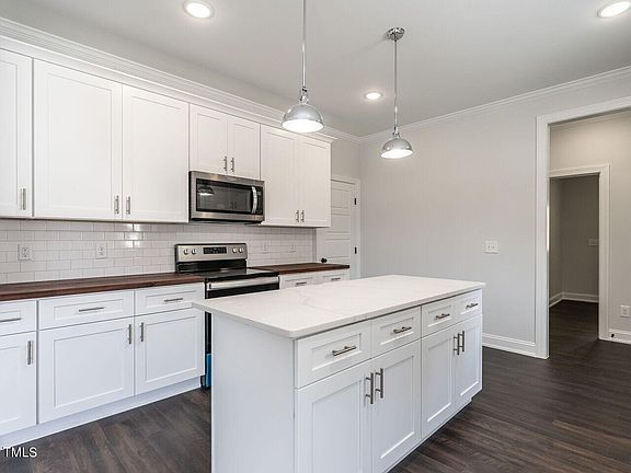 New Community in Johnston County: Move in ready Single-family home! Just 15 Minutes from Flowers Crossroads and 20 Minutes from Wilson Shopping. Quiet private wooded lot. Home features 1823 sq ft ranch home with attached garage. With 3 bedrooms, 2 baths. Kitchen has white shaker cabinets with Butcher block & quartz countertops and subway tile backsplash for a timeless finish. Make this home, yours today!