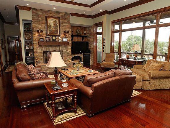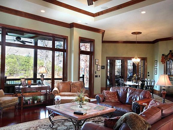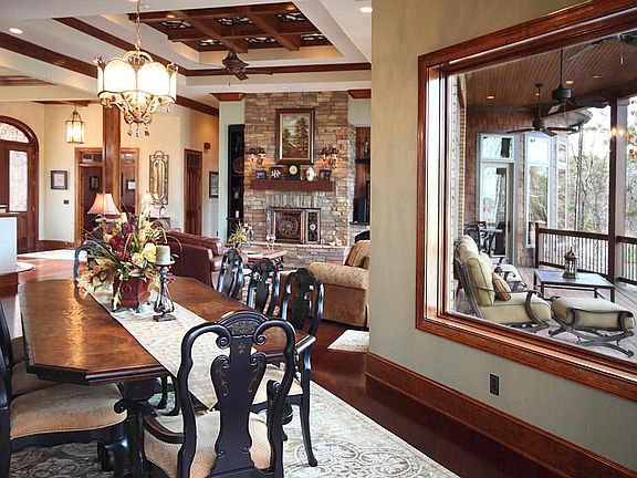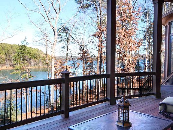 This enchanting waterfront home, merely yards from the main channel of Lake Keowee, is sure to captivate with its open floor plan and numerous decorator touches. Quality, craftsman embellishments such as Brazilian cherry floors, stained moldings & feature coffered frame iron accents capture a true comfortable mountain lake atmosphere without feeling like a dark, over dramatic cavern. Simplicity adorned with elegance. Four bedrooms, each created as a private suite, with four full and two half baths and a three-car garage. Ample space and fluent design for entertaining countless visitors while offering a refined retreat within each of your guest's quarters. Paneled wood and specialty trim grace the office that can easily transition into any purpose you feel lacking in this unparalleled lakefront home. An exceptional all-seasons porch with stone fireplace, both covered and sun-bathed verandahs and a lakeside patio with fire pit near the boathouse ensures full enjoyment of a beautifully treed and private setting.