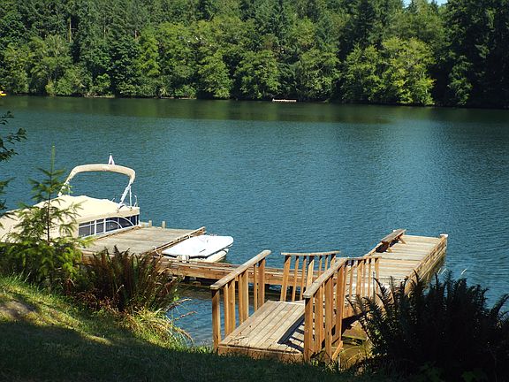 View of Mayfield lake property includes a community dock with easy access low bank. 3 bedroom 2 bath home in mint condition across the street from Mayfield lake. Sit on your deck and watch the Eagles fly near, boaters floating by, water is a few steps away from property. Utilites are DSL internet, sewer and water, power. New roof, just painted exterior, deck has been stained, fenced yard.