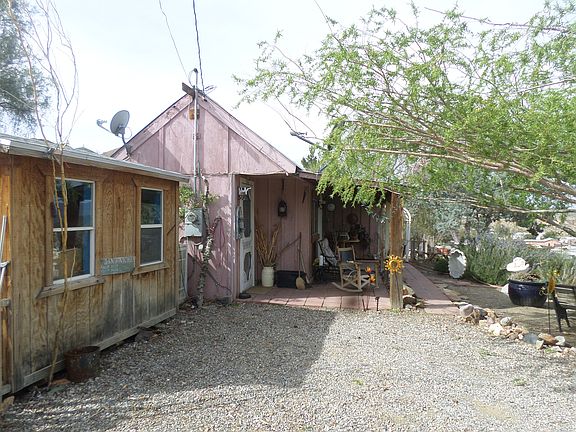 The home is a fixer upper..with a great location in a small 1890's gold mining town.It is wood frame single story and the inside is in fair shape .The septic has been completely redone with a large cement holding tank Aprox.9 years ago.The plumbing is good ,electric hot water heater is one year old .Wood heat for warmth and propane for the cook stove. It needs some work in the main bedroom a roof leak has caused some drywall damage that has been pulled down but not repaired as of yet The outside of the home needs paint and TLC.The inside was redone in 2007 but will need to be painted .The home itself is built well windows seal well .It has french doors throughout the home and old victorian style wood trim .Built in wooden medicine cabinet ,Shower and pedicel sink in the bathroom .the propert tax runs about 380.00 per year. Water from out town water company that just got voted the best tasting water in California ,runs about 50.00 per month.The location off a short dirt road could not be better .The view of the Sierra's from the shaded front porch and the surrounding desert does not get any better ..It is a quiet retreat . The driveway is large enough to park four cars on. Their is one out building that is finished inside (drywalled painted carpeted electric ) that measures 12 by 12 feet . It was used as a spare bedroom ..Old woodwork and trim is throughout the home . The enire attic was vacuumed and cleaned and reinsulated in 2007.
