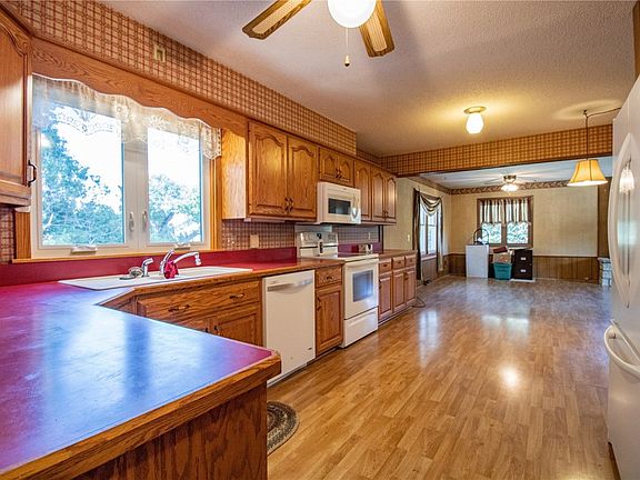 You'll want to come right away to see this 2 story home with an extremely scenic double lot on the edge of town. Features 3 bedrooms, 1.5 baths, very open, Stone City stone fireplace, patio, 1 stall garage with room to add more! Won't last long at $189,900