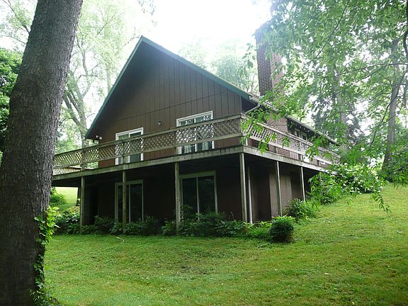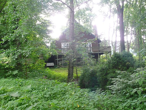 PRIVATE CHALET STYLE HOME ON AN ACRE OVERLOOKING THE DAM, BORDERED BY GOVERNMENT LAND FEATURES A GREAT ROOM WITH 32' CEILING, A LOFT, BRAND NEW MAIN BATH, FINISHED LOWER LEVEL WITH BED, BATH & COZY FIREPLACE, AN OUTBUILDING FOR ADDITIONAL STORAGE...ALL ON A BEAUTIFUL SETTING!
