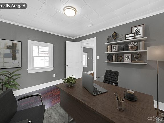Welcome home to this adorable home on a quiet dead end street within walking distance to downtown Maiden. Updated 5" LVP dark wood finished flooring throughout. Freshly painted throughout. Brand new stainless steel refrigerator and electric range in cozy kitchen. Upon entering this home you'll find a large living room with an addition off to the right, could be a 2nd bedroom/office. Large laundry/mud room is off the backdoor with access to the gravel driveway. Ceiling heights vary throughout with lowest in the bathroom. Overall home square footage is 882, but 180 sq ft is comprised of the mudroom and bathroom with ceiling heights less than 7 feet.
