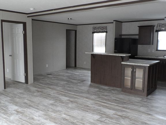 Spacious and Freshly painted 3 bed 2 bath Double wide Lots of cupboard and counter space. Island in kitchen and dining area Master bath has a Garden Tub and stand up shower Walk in closet in Master Vinyl flooring throughout 12 Month Lease with option to buy No Smoking Resident pays all utilities Quarterly inspections Resident responsible for yard upkeep $25 per month per pet, 2 Pet Max