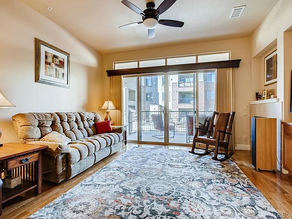 Beautiful unit! The largest floor plan in the complex! This 3 bedroom unit has all the upgrades and 10' ceiling! Beautiful wood laminate flooring in the living room, dining area and kitchen. Spacious living room has lots of natural light, ceiling fan, built-in for TV, and gas fireplace. The dining room has built-in cabinets with granite counter-tops, wine cooler, beautiful tile backsplash and wine rack. The upgraded kitchen has a huge island with granite countertops, all upgraded stainless appliances, stove with double oven, new garbage disposal, pantry and desk space. This space is absolutely perfect! The master bedroom is spacious with a private patio with screen door; ceiling fan and blinds; bathroom with double sinks, upgraded rain fall shower; California master closet with built in safe. The hall bathroom has a double sink. Upgraded carpet in bedrooms with specialty pet padding. The covered balcony is perfect to relax! It has a fireplace and gas grill. You drive into your personal 2-car tandem garage and walk into the hall, so you never have to walk into the weather. The spacious garage comes with shelving for storage and you can park an additional vehicle outside at the garage door. Wonderfully maintained with newer water heater, HVAC system recently serviced. You are across the street from John Deery Park, minutes from Park Meadows Mall, close to I-25, 470 and light rail. Shopping and restaurants can't be more convenient. Move in ASAP!