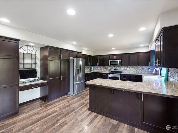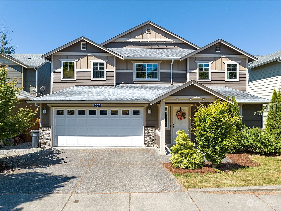 Stunning 4 BD home on a prime greenbelt lot in Digby Heights. Highlights include a spacious 3-car tandem garage, an indoor Juliet balcony, custom espresso cabinetry, beautiful hardwoods, a captivating corner fireplace, and elegant beveled wood pillars. The open floor plan seamlessly blends a generous entertainment area, a delightful eat-in kitchen, and a formal dining space. Choose between a main-level bedroom or the upper-level primary bedroom with vaulted ceilings, a luxurious 5-piece bath, and a vast walk-in closet. Fully fenced large backyard backs up to a green belt, ample entertaining deck is ready for BBQ afternoons. This turnkey property is on a quiet dead-end street with quick access to I-5, schools, grocery shopping and hospital.