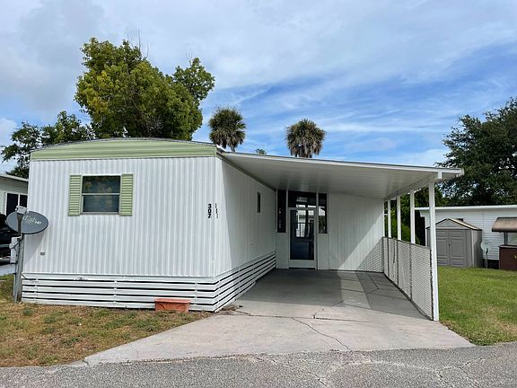 This cute, very clean and spacious two-bedroom one bath single wide in a low lot rent 55+ community comes with everything you need! This home includes inside laundry with newer washer and dryer, laminate floors throughout, updated bathroom, updated kitchen, partially furnished, nice screened in porch with a handicap ramp or the ramp can be removed, there are stairs to enter the home. Nice driveway and carport! Good sized shed for extra storage! Make this your winter retreat or a forever home with lower lot rent of $350 per month that includes water, sewer, and trash. Close to shopping restaurants and beaches! ALL INFORMATION DEEMED ACCURATE BUT NOT GUARANTEED Additional fees for amenities may apply. Agent and or Company is not responsible for quoting current monthly fees, lot rent, or dues/fees associated with the community or home. Those figures are the responsibility of the buyer and community manager/owner to obtain/ disclose.