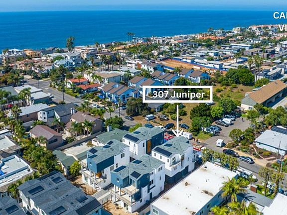 Sold prior to processing. BRAND NEW CONSTRUCTION w/ PRIVATE ELEVATOR! 307 Juniper Ave is one of four detached luxury homes coming to highly desirable coastal Carlsbad with NO HOA. Less than 2 blocks from the beach, this exquisite residence will feature 2,412 square feet with 3 bedrooms plus loft and 3.5 bathrooms, 1st floor bed/bath, 3-story modern open floor plan made for entertaining. Enjoy high-end amenities, stunning interior design, European oak wood floors throughout, quartz countertops, designer tile, lighting and hardware. Gourmet kitchen with large island, custom stained wood cabinetry, Dacor stainless appliances including 42" built-in refrigerator, 36" 6-burner gas range, microwave drawer, wine refrigerator, single basin Kohler sink w/ Brizo faucet, walk-in pantry and open to great room. 12' Western three-panel sliding door completely disappears when opened in the great room to seamlessly combine the living space and deck for indoor/outdoor living. Deck plumbed for gas perfect to add a built-in BBQ. Additional notable features: fireplace in living room, open/easterly hill views from the 3rd floor + peak ocean view from primary, spacious primary suite with deck and spa quality bath, all bedrooms have own attached full bath, bonus loft perfect for a home office, private fenced yard, a 2-car garage plus 3rd car parking space, laundry room with sink and ample storage + additional 3rd floor laundry hookups, pre-wired for electric car charging, solar panels & system installed and more. This exclusive ocean-close, detached residence offers all the best of coastal Carlsbad Village life with beaches, shops, restaurants, parks and trails just steps from home. Anticipated completion December 2023. *Virtual tour and interior renderings shown are reflective of the finishes in 301 Juniper which is the same floor plan but reversed. Interior finishes and colors may vary.