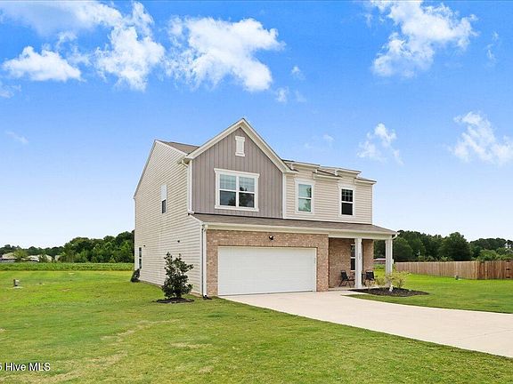 This beautiful newer construction home is in the popular neighborhood of Settlers Pointe in Pikeville and sits on half an acre in a cul de sac! This 3 bedroom, 2 1/2 bathroom home at 2091 Sq feet offers so much extra living space! Walk into the foyer with a bonus space off to the right and a 1/2 bath. Continue onto the living room which is open to the large kitchen that features a HUGE island and also offers an eat-in dining space. Kitchen features stainless appliances and granite! 2nd floor has a 2nd flex space at the top of the stairs - perfect for a play room or office. All 3 bedrooms are upstairs. 2nd and 3rd bedroom are split with a spacious bathroom that has beautiful quartz countertops. Primary bedroom is HUGE and en suite has a large amount of quartz counter space with room for a vanity chair. Backyard is spacious! Close to Seymour Johnson and all things Goldsboro has to offer. Transferrable termite bond also available.