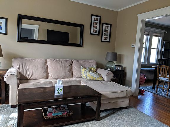 Avl 6/20!! This lovely apartment is on the first floor of a beautiful 2 family house. It has gleaming hardwood floors throughout, a spacious living room and dining room, a modern kitchen with dishwasher and tons of cabinet space. The bathroom has been updated and there are two bedrooms that get lots of light.Private front deck and back closed in porch! There is also a spacious backyard that is shared with unit 1! One garage parking space and one outdoor space are included in the price of the rent. Pets are negotiable! -Utilities are tenants responsibility -Move-in fee is rent x 3 (first,security,brokers fee). -Email for all inquiries! 2 parking spots included!