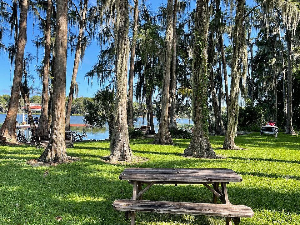 Check out this Lutz Lake House located on Lake Hobbs! NO HOA. The home is currently being used to store clothing for a charity. It is set up as a charming boutique.