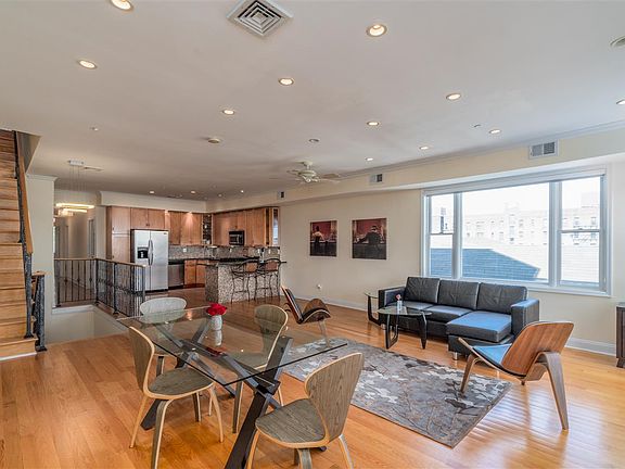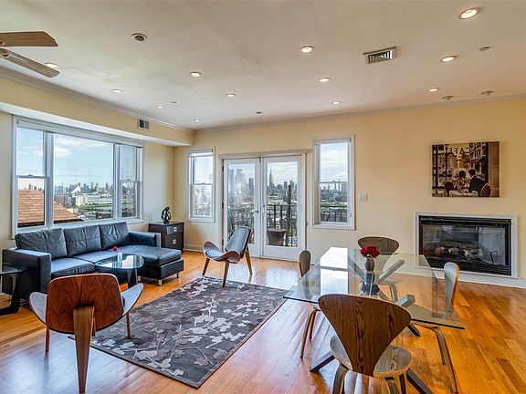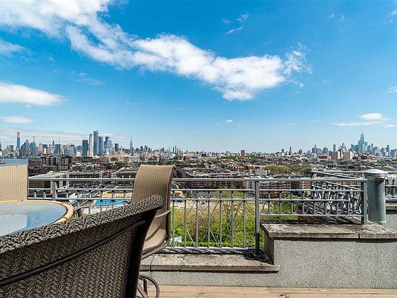Beautiful, sunny duplex penthouse with expansive open-concept living area features over-sized windows and breathtaking, panoramic NYC views! This 3 / 4 bedroom, 3 bath home with over 2,266 sq. ft offers a luxurious space perfect for entertaining with its generous sized kitchen with SS appliances, granite counter tops and spacious living and dining areas. With both a gas and a wood-burning fireplace, central air, central vacuum, Jacuzzi tub, in-unit W/D, and hardwood floors through-out-- this home has it all! The main floor of this home features a master bedroom suite with walk-in closet and stunning bathroom and two other generous sized bedrooms with large closets. The second floor can either be an amazing second master suite or entertaining loft with two spectacular decks with direct NYC views. There is plenty of storage inside the unit as well as 600 sq ft of private storage in the building along with two tandem parking spots. All this on a quiet street conveniently located near parks, schools & NYC transportation. If you want space and view this is your next stop!