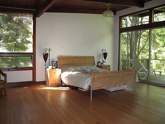 Ready for Something Stunning and Different? Gorgeous Mid-Century Modern home, just completed a full renovation and expansion! Lots of Mid-Century style blended with a slight update for today's lifestyle. 4BR, 3 1/2 BA, now over 3300 sq ft. The Main Living Area will take your breath away- huge open Living Room and Dining Room (almost 900 sq ft here alone!) with a vaulted ceiling (all engineered laminate joists) gas fireplace, double-height windows. The Kitchen is equally as stunning- plenty of cook space and plenty of entertaining space. Breakfast Bar and eating area. A touch of Industrial with the exposed ductwork. Beautiful white cabinets, white quartz counters with waterfall edge, and gold hardware. These rooms open to a huge deck that runs across the back of the home and offers beautiful views into the woods and tons of privacy. The Master Bedroom suite is another stunner- Huge space, the same gorgeous gray stained hardwood floors, vaulted ceiling, custom lighting, exposed ductwork, sliders to the deck, large walk-in closet, and a gorgeous bathroom with soaking tub, dual sinks, separate shower, and glass tile feature wall. Two more bedrooms on this floor share a large bathroom with double vanity. The Lower Level opens out to a beautiful stone patio with interlocking pavers, and a firepit already wired and plumbed for a gas log hook-up. Lower Level contains the Family Room, Home Office, and another Bedroom Suite with full bath and walk-in closet. Magical winter sunsets!!