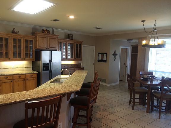 Rare opportunity at country living and still close to city life. Beautiful red brick home on large half acre lot. 4 Bedrooms, 2 Baths. 4th Bedroom could be used as office. Kitchen features tile floors, granite counter tops, amazing custom cabinets, under cabinet lighting, tile backsplash, and stainless appliances. Carpet recently replaced. Upgraded lighting fixtures throughout. Wired for surround sound that includes speakers on patio. Huge master closet. Oversized laundry room with space for freezer. Private backyard. Large covered patio. Great above ground pool, shop, and custom playhouse that included electricity and ceiling fan. Extended driveway with lots of extra parking. Garage features large closet for extra storage.