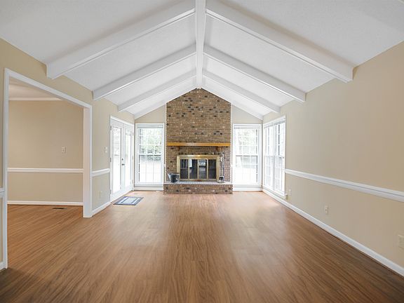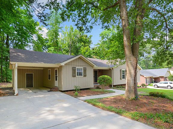 Highly desirable ranch style home in prime Cary location. Luxury vinyl plank floors throughout most of home. New roof 2022. Fresh paint inside & out. Spacious family room features vaulted ceiling with wood beams & masonry wood burning fireplace. Formal dining room. Bright & open eat-in kitchen offers stainless steel appliances. Like new carpet in bedrooms. Primary suite has double closet and restored tile shower. Nice sized laundry room. Both bathrooms equipped with granite countertops. 1 car carport with large storage closet. Great backyard with wooded buffer and oversized patio. Super convenient location. Near great shopping, dining & entertainment including popular Fenton!