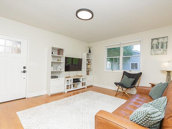 Charming three bedroom/two bath 1500 sq. ft. home in quiet neighborhood. This 1940 historic home retains its original character but with modern amenities like a newly remodeled kitchen with Samsung appliances, renovated bathrooms, and built-in shelving. Enjoy the quaint beautifully landscaped backyard with PVC picketed fence and covered porch perfect for outdoor gatherings and relaxation. Includes an oversized detached two-car garage with a large gravel drive with raised garden beds. All information to be verified.