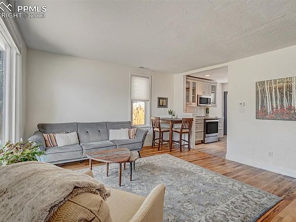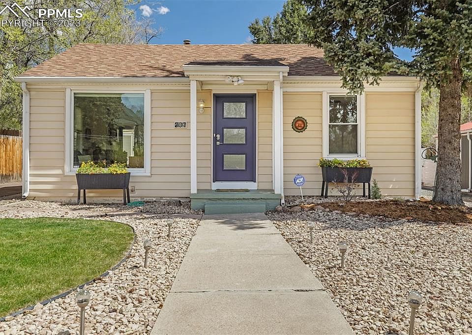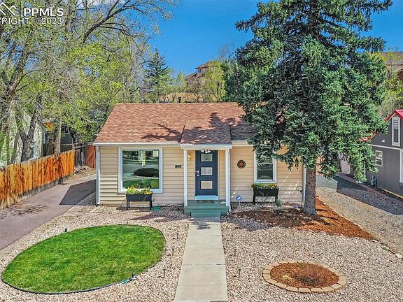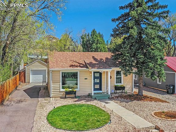 Charming 2 bed, 1 bath bungalow with mountain views, minutes away from Old Colorado City, Garden of the Gods and Red Rock Canyon open space! This immaculate home welcomes you into living space with a perfect mix of vintage character and modern updates. The living room provides ample natural light and features gorgeous hardwood floors and freshly painted walls with crisp white trim. The renovated kitchen was completed in 2022 with new cabinets, quartz countertops, sink/fixtures, modern stainless steel GE appliances and LVP flooring. Access to spacious fenced yard & detached 1 car garage is found through the door leading out the kitchen. The home’s two bedrooms have great natural light, newer carpet & new ceiling fans w/remotes. The full bathroom features modern finishes, newer vanity, refinished tub & tiled shower. Laundry access is conveniently located in the hallway w/extra shelving for storage or linens. The large double lot & concrete patio are perfect for outdoor entertaining! Detached garage is fully finished with electrical heat and portable A/C unit. Space to store all your recreational gear found in the 8’x8’ shed that charmingly matches the garage and house’s exterior. Don't miss out on this ideal location in Old Colorado City with its trendy shops and restaurants within walking distance, and 3 minutes to Garden Of The Gods for the outdoor adventure seeker to explore. This home is move-in ready! (New tankless water heater & plumbing throughout, new doors & custom window treatments, sewer line repair 2021, Roof 2017)