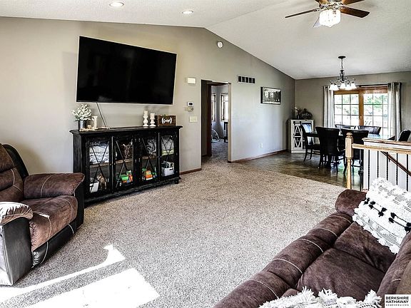 OPEN SAT 11am-1pm! This sprawling ranch home sits on the edge of the small town of Colon. Views of the countryside out front and just a short drive to Wahoo, Omaha and Lincoln. This well-built home features an open floorplan on the mainlevel with vaulted ceiling & huge bay window letting in tons of natural light. Lots of storage in the kitchen. Neutral paint throughout. The Primary features large walk-in closet and en-suite bathroom. 2 additional bedrooms on the main floor with ample closet space. Finished lower level has full kitchenette space perfect for entertaining-or with a seperate entrance from the garage, it would be a perfect "mother-in-law suite" bathroom. Large rec room w/projector & flex room perfect for workout equipment. Giant storage area. Outside you'll enjoy the peace on the oversized composite deck and patio area including an automated sunshade. Large flat yard is well manicured.Add. 2car detached garage perfect for hobbyist or additional storage. Welcome Home!
