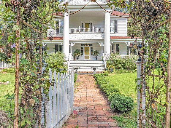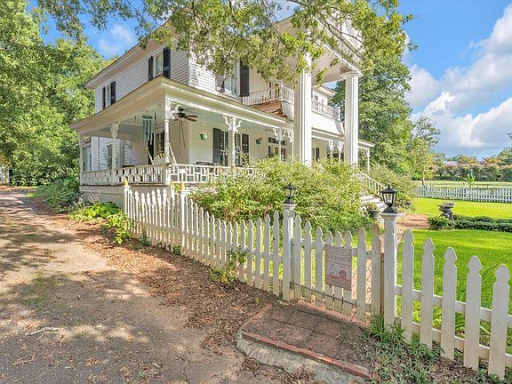 Built in 1827, this stunning Greek Revival is a true standout! With sparkling crystal chandeliers, a hand-painted mural of Georgia's flora and fauna, and those iconic columns, it's full of charm and character. The spacious porch and second-story balcony add to its inviting feel. Inside, you'll love the wide central halls, double parlors, formal dining room, and multiple ensuite bedrooms (two on the main level!). The grounds are just as special-gardens, a patio with fireplace, plus a guest cottage and workshop make it perfect for entertaining. And here's the best part: it's not in the historic district-so you get all the beauty and craftsmanship of an 1800s home with more freedom than most! Add in a location just steps from the downtown Square with its restaurants and shops, and you've got something truly rare.