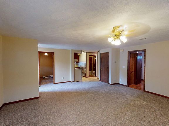 Cheaper than rent! This cute 2 bedroom ranch is getting a new Hi Efficiency furnace and central air August 2020! Maintenance free exterior with a 2 stall garage with a new door opener. Everything is fresh and clean! New carpets in 2020! Newer vinyl siding and the roof was replaced in 2012. Large open living room and the kitchen behind it had been added to the original home. Original kitchen still functional. Would make a great wet bar! Basement has open family/rec room and a bathroom. All this and under $70K !! 2nd Bedroom has no closet. Property in an estate and being sold as-is.