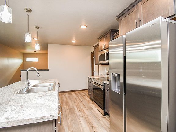 Welcome home to this nearly-new home with the potential for THREE bedrooms! This end-unit townhome features a large yard with no backyard neighbors! The main floor has a beautiful kitchen with large island along with a large pantry and laundry room. The primary suite includes a private bathroom and walk-in closet. The basement is where you'll find endless potential for growing your equity by adding the last touches to the finish work. Enjoy the 9 foot ceilings and add two more bedrooms and a living room with a walk-out to the serene yard. The HOA covers lawn care, snow removal, garbage pickup, and water/sewer. All appliances included!