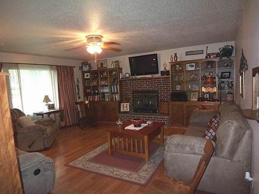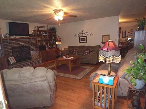 Affordable 3 bedroom home setting on two large tree shaded lots with alley access. Living room boast beautiful wood laminate flooring and gas log fireplace. Nice size kitchen/dining room, offering open floor plan and includes the newer electric flat top stove and refrigerator. Newer CH/CA, chain link fencing, covered front and back porches. Two 2-car detached garages, one with smaller workshop.