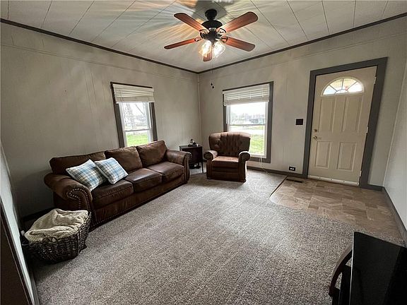 Small town living at its best!! Super cute 2 bedroom and 2 bathroom home. Completely remodeled and move in ready. Flow effortlessly from one room to the next in this easy floor plan. Enter into the living room and straight into the dining room. The spacious dining room opens into the kitchen. The kitchen is full of charm with tons of cabinet space and storage. Don't miss the tin ceiling! Main bedroom has its own bathroom and a walk in closet. Back porch leads to the partial basement. Some upgrades include new paint, new flooring, additional bathroom, and walk in closet. You will love spending time in the oversized backyard with a full privacy fence. Enjoy the patio while you BBQ! Mature trees, a nice storage shed, and a 2 car shop with electricity and partial concrete floors. Located on Main Street near school, park, and shopping.
