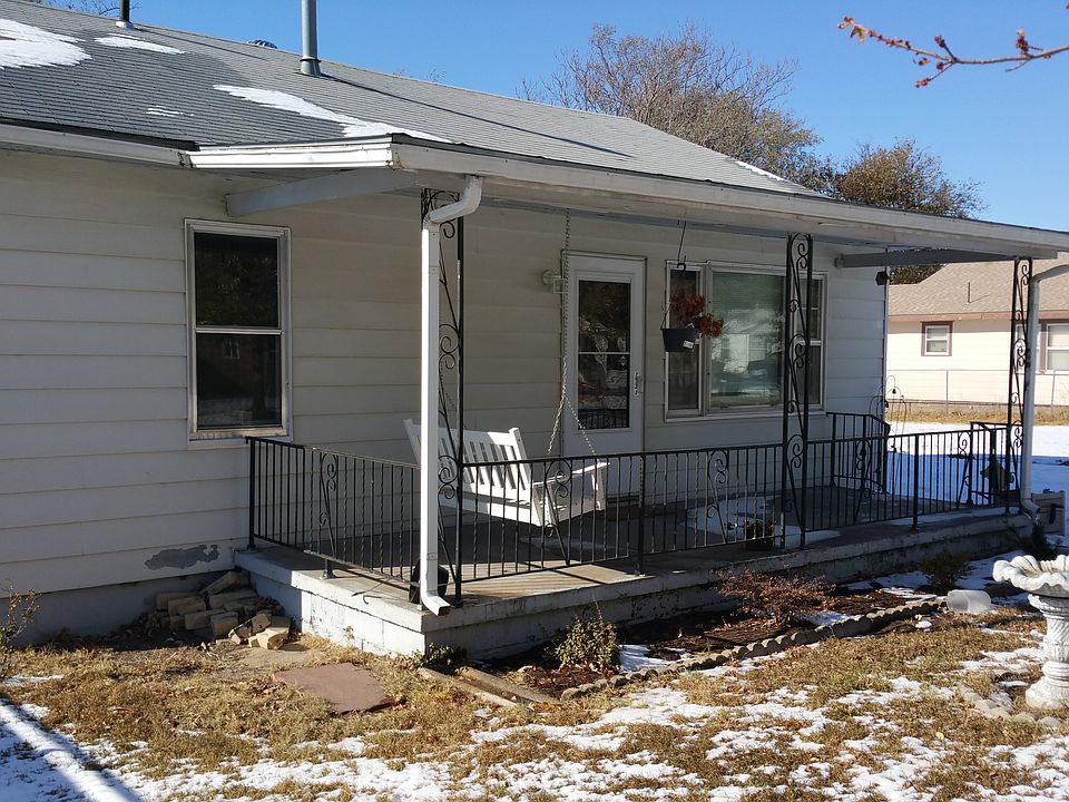 2 bedroom 1 bathroom. Wood floors, new linoleum in the kitchen and dining room. Water heater is 2 years old. Gas stove and dishwasher stay, both are less than 5 years old. Both back and front porches are covered. Gas floor furnace and window Unit. Oversized 2 Car detached garage with an extra lot. Fenced yard. Nice Dog house and dog run in the back yard. Right down the street from Dodge Elementary. Close to Town West Mall. Some of the pictures were taken in panoramic view so that is why they have a slight bend to them.