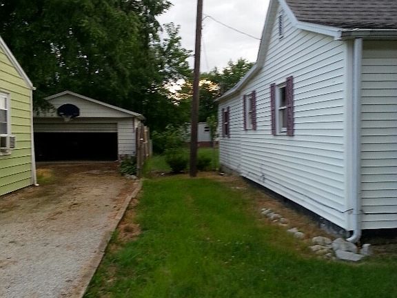 Exterior Features:This house is on a 7405 sq ft lot. Curb appeal is fair. Siding is vinyl and in fair condition. Roof is shingle type in poor condition. No garage. Gravel driveway. Interior Features:This is a 3 bed 1.5 bath house with 1262 sq ft. Flooring is carpet and vinyl and in poor condition. The kitchen has a sink, cabinets, counters, and a gas stove. The full bathroom has a sink, toilet , tub and a shower. The half bathroom just has a toilet. No basement.