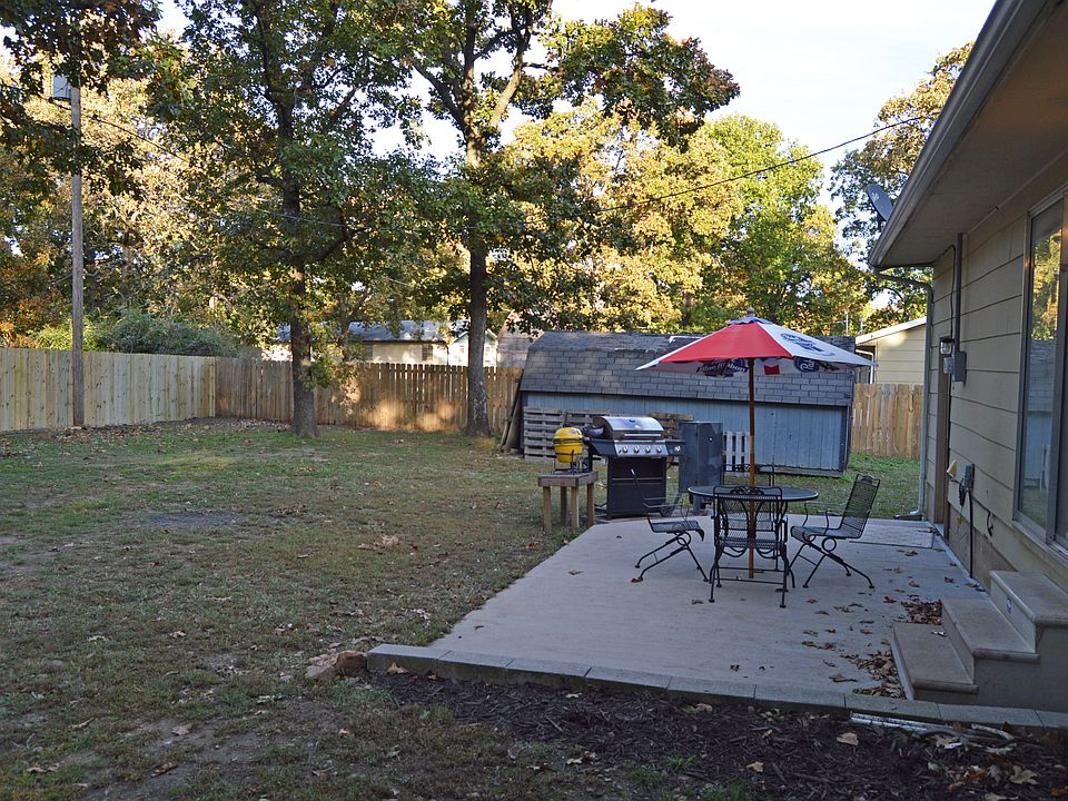 Charming home nestled in a quiet neighborhood with a peaceful setting, this one is a must see! Beautiful large front yard with mature trees and a covered front porch space. Inviting living room with great natural light and hardwood floors that take you into the roomy dining area and white cabinet kitchen with a great amount of space. 3 sizable bedrooms, a full and half bath, and a large fully fenced backyard with an additional storage shed and patio area. New roof added in November. Fall in love with the charm and setting of this home-schedule a showing today!
