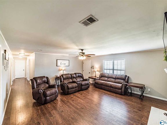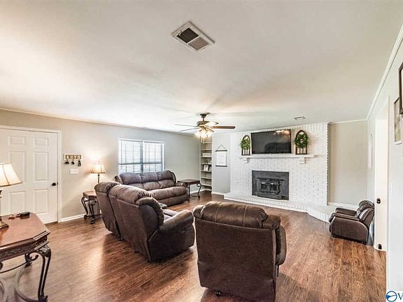Conveniently located in Albertville city limits, this updated, full-brick home is move-in ready with freshly-painted neutrals & smooth ceilings! The great room boasts charm with its wood-burning stove surrounded by a gorgeous white-painted brick mantle, hearth, & built-in bookshelf. Handscraped hardwoods flow throughout the living area & bedrooms. The kitchen features a formal dining room, pantry, & stainless steel appliances. With built-ins, 2 closets, gas fireplace, & exterior entrance, the den provides opportunity for a bonus room or even a 4th bedroom! Plus, in addition to a fully-fenced backyard, you'll enjoy the privacy with the absence of neighbors directly behind the property.