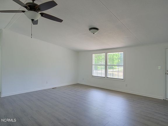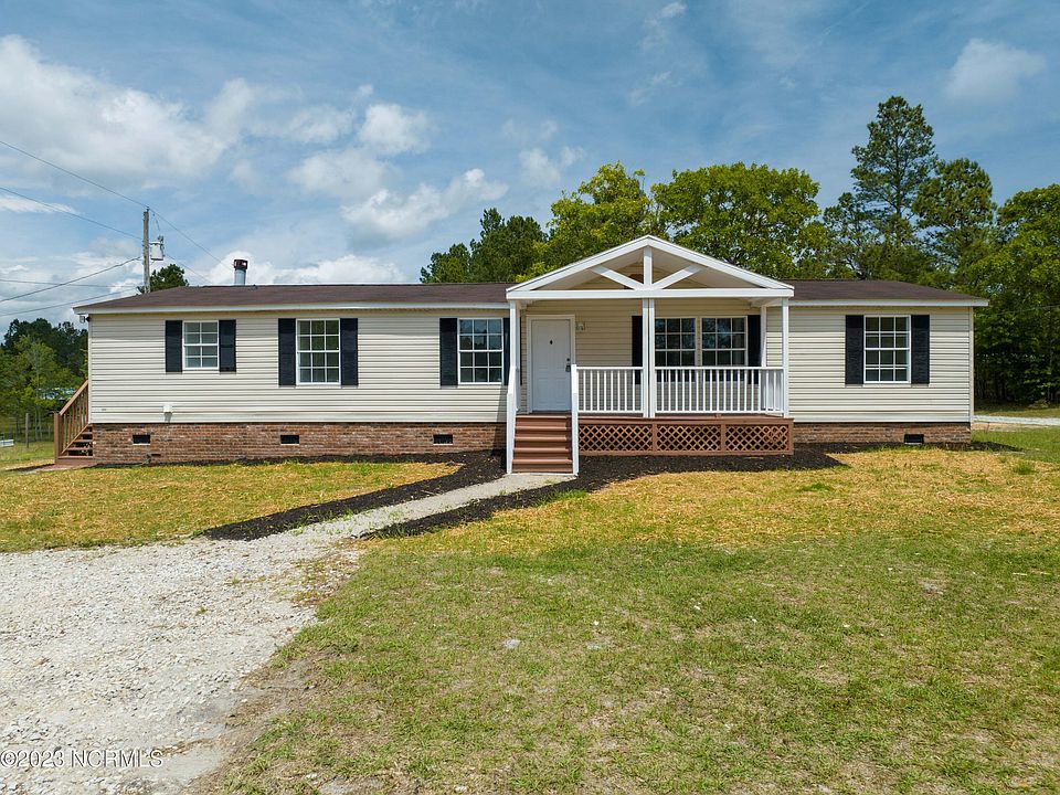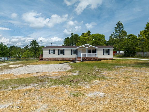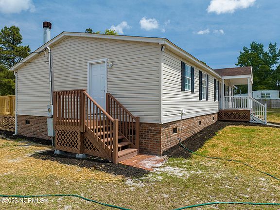 Lovely freshly updated 3-bedroom / 2-bath manufactured home on one acre of privacy. This home is located only minutes from the Topsail beaches and shopping. Enter through the front door to the spacious living room with an adjoining dining room. Conveniently located next to the dining room is the galley style kitchen that has a pantry and stainless-steel appliances. Enjoy those cold nights cozied up to the fireplace in the den or head out to the attached deck for star gazing. The master bedroom features a walk-in closet, master bath with a large, tiled shower and dual vanities. This floor plan helps create the privacy needed with the master bedroom located on the left side of the home and the other two bedrooms located on the right side of the home. The bathroom provided for the other two rooms has been updated with a new tiled tub area and vanity. Other items worth mentioning are the laundry room, covered front porch entry and new flooring throughout the whole home. Come home to your private oasis set nicely back from the road with a very large backyard and shed. The listing agent has an ownership in the LLC that owns the property.
