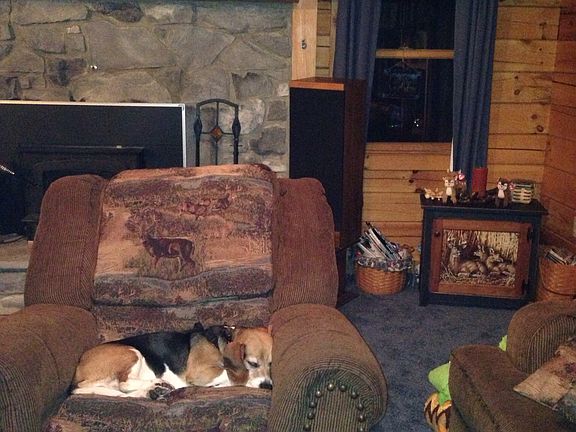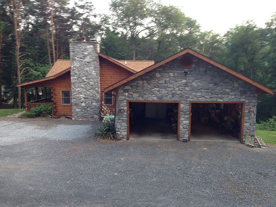 Selling for what it cost to build it ... Beautiful ,,Kunns Brothers Solid log home Two car garage with power garage openers Stone on garage & fireplace Ceramic tile in kitchen hallway , & bathrooms Carpet in living room and bedrooms Master bedroom has walking closet in master bath Laundry room off the kitchen on first floor with pantry Basement has extra high ceilings partially finished off studed out with two by sixes and wired and insulated ready to be finished with workshop and workbench