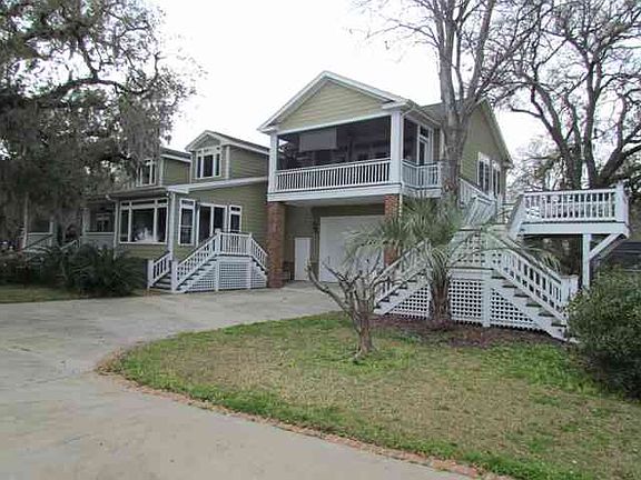 Unbelievable panoramic views of the river and bay. Floating dock. also a covered dock with lift, water and electric. Home was totally remodeled in 2002. Now boast heart pine flooring throughout, extensive crown molding, granite countertops in kitchens. Bottom level consists of 2 bedrooms, 1 bath, den, small eating area and laundry room. Main level has large kitchen, lots of cabinets, and eat in bar. Living room has gas log fireplace, view of the water and access to a large front porch. ...