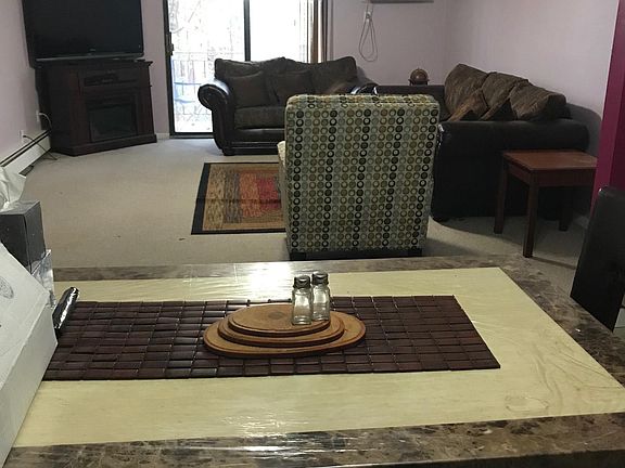 Approximately 900SFT, Well maintained, 4 rooms, 1 bedroom, 1 bath, Balcony. Wall to Wall carpet in Living room and Bedroom. Wall A/C Living room and Bedroom. 2 off street parking spaces in lot. Pets ok with permission of association. Enjoy the river front. Facilities include laundry room & swimming pool.