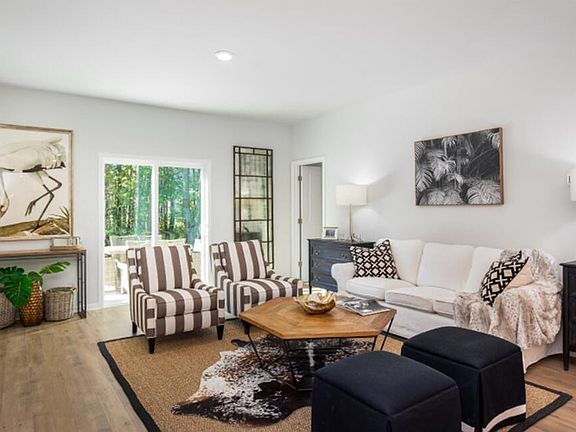 This single-story home features a convenient laundry room near the foyer, while in the main living space is a contemporary open layout that leads out to the back patio through sliding doors. In the other half of the home are all three bedrooms, including the owner's suite with an attached full-sized bathroom. At the front is a versatile two-car garage for storage space.