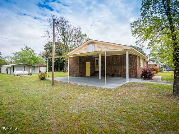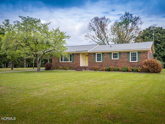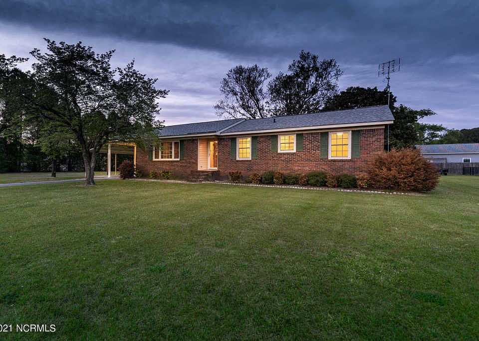**USDA ELIGIBLE** This adorable brick ranch is waiting for someone to make her home! Featuring vinyl windows and NEW ROOF this 1,300 square foot plan sits on an almost half acre lot on a dead end street conveniently located between Greenville & Washington OUTSIDE CITY LIMITS. Front door opens to an oversized living area with a wall of built-ins that ad loads of charm. Fireplace with brick hearth cozies the dining space. Guest bedrooms share a jack & jill bath, while master has it's own en-suite. Outside you'll find covered parking, detached shop and several other outbuildings for storage. NO FLOOD INSURANCE REQUIRED!