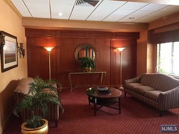 Large one bedroom unit in luxury building on Prospect Avenue with sunset and mountain views from living room and terrace. Freshly painted and move-in ready. Large living room (21' X 12'6")with walk-in closet and a second closet and terrace. Dining area off galley kitchen.Over sized bedroom (17'7"X 13'3")with a walk-in closet and a second closet. Tile bath with shower over tub. One garage parking space included. Building amenities include:24 hr door-person, pool, exercise room, laundry on floor. NYC bus half block away.Two train stations to Hoboken. Near HUMC, malls, restaurants. Come and enjoy living on prestigious Prospect Avenue in Hackensack.