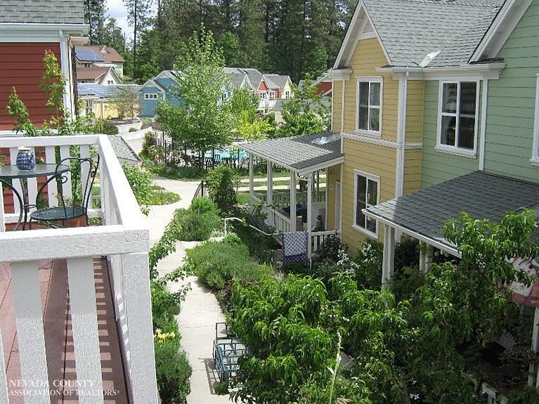 Wonderful Nevada City two bedroom condo unit on quiet end of cul-de-sac. Many features make this special - unit has its own washer/dryer inside, vaulted ceilings and a huge built-in bookcase that stays. A beautiful high-end retractable awning included! Large attic! This is one of the most private units available due to its location! The amenities in this great development include pool & jacuzzi, large meeting room, commercial kitchen, community walking paths and gardens, music room, teen room, community lounge & pool table, etc. This is in walking distance to historic Downtown Nevada City. Co-housing is a wonderful community in a very safe and friendly environment. Low energy bills due to the solar concept! Children AND Pets are welcome! This is in co-housing. See attached docs.