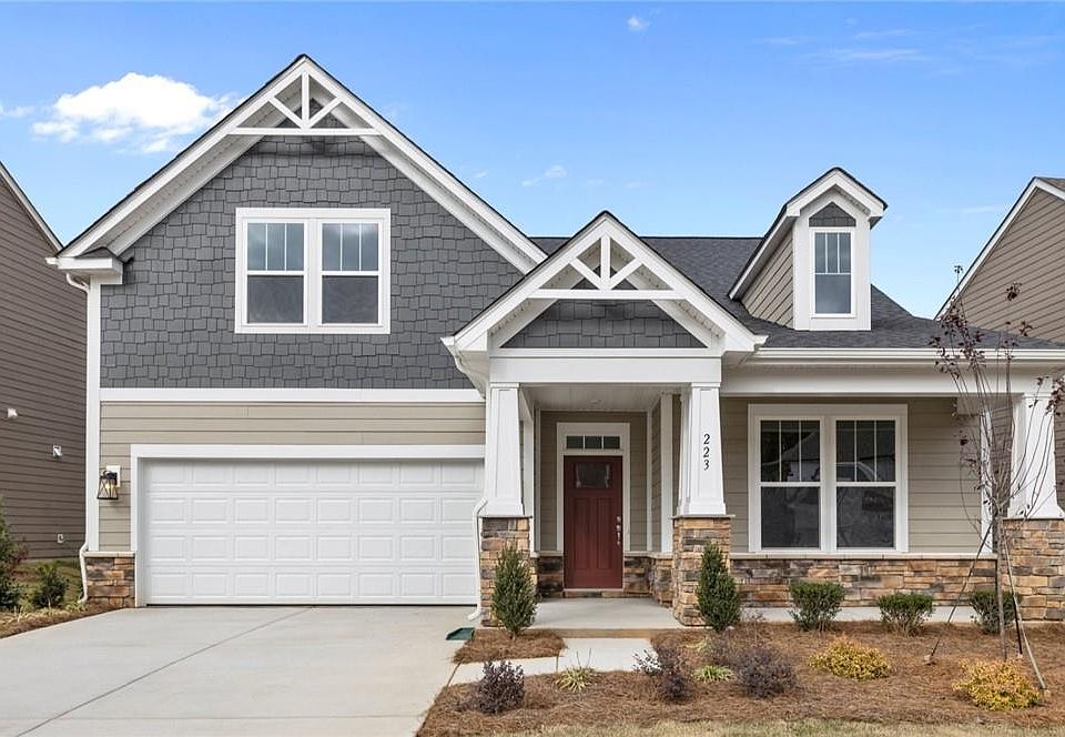 Our fabulous Cooper 3 plan is a one and a half story with a finished bonus room above garage. This is our WOW plan w/ a fantastic kitchen featuring an oversized island, w/ white Farmhouse sink, white cabinets & Quartz counter top, Wall Oven & Microwave, 5-Burner Gas Cooktop, Range Hood, SS Appliances & Tile Backsplash. The large family room has a vaulted ceiling w/ a gas log fireplace! The primary bedroom features a walk-in closet along w/ its en-suite primary bath. The bath has dual raised vanity, tile floor, semi-frameless shower with seat & tile surround, linen closet & water closet. Generously sized bonus room, a 4th bedroom, full bath & walk-in Storage! Rear Covered patio! Paddlers Cove offers an abundance of amenities, both natural & traditional: 2 Pools, open air pavilion, play ground, County Park/Lake Wylie Sports Complex is right in the center of the community.