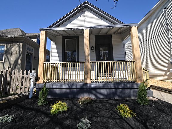 What a transformation on this nicely renovated 2 BED, 1.5 BATH home in the heart of the Historic River City of Bellevue! Everything you need is on one floor and has been beautifully updated throughout! The spacious Living Room opens up to the Kitchen which includes brand new cabinets, quartz countertops, decorative tiled backsplash, and new stainless-steel appliances. Primary Bedroom has a walkout to the covered porch. The Primary Bath includes a gorgeous, tiled floor & tiled tub/shower. Bedroom 2, an additional Half Bath, AND Laundry Room are also all on the main level. The brand new ''hardwood like'' luxury vinyl flooring throughout, and freshly painted walls give off that bright and airy feel! Relax on the covered front porch with newly installed landscape below. Backyard is level and surrounded by a privacy fence which could be fully fenced in with ease. Apply for grant money from the City of Bellevue to install a parking pad in the backyard, if you wish. Fast access to the expressway can get you to Cincinnati in no time, or walk to the nearby Nagel Park, restaurants, and boutiques by the river. Move now into this move in ready home in one hot area!