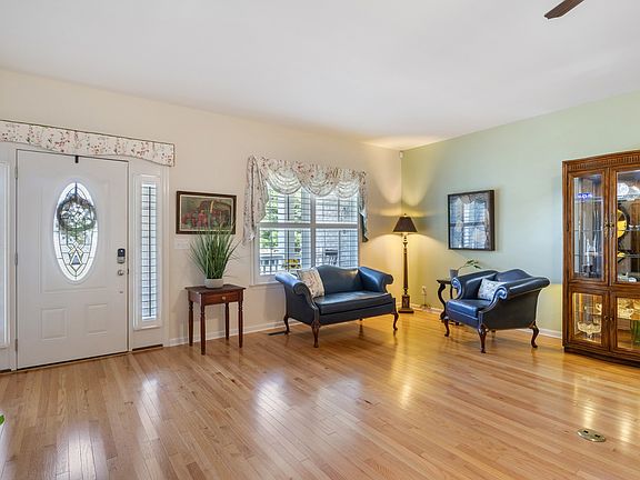 BACK ON THE MARKET DUE TO NO FAULT OF SELLER! Please inquire! On a quiet Cul-de-sac, this stunning brick home is designed for everyday living & effortless entertaining all on 1.66-acre lot. The Open-Concept layout features hdwds & recessed lighting throughout main living areas. At the heart of the home, the oversized kitchen has an abundance of cabinetry, 2 islands, walk-in pantry, s/s appliances incl. fridge, motion-activated Moen faucet, built-in beverage bar & under-cab. lighting. The spacious living room comfortably accommodates two conversation areas & flows seamlessly into the dining space which opens onto the back deck w/ a retractable, lighted awning (auto. retracts in winds over 20 mph) providing shade on sunny days. Don't miss the hot tub on a separate pad that conveys. The thoughtfully designed split-bedroom layout ensures privacy for the owner’s suite, which includes a generous en-suite w/ new double vanities, fixtures, upgraded porcelain countertops, a separate shower & soaking tub, remote-controlled shades & an oversized walk-in closet. 3 additional bedrooms & 2 baths (one en suite), each with walk-in closets, are located on the opposite side of the home-ideal for guests/family members. Step outside & discover the tranquil, fenced backyard w/ a pedestrian gate that leads to a serene garden area, complete w/ six raised beds & a peaceful LAKE VIEW. A double gate allows easy access for lawn equipment & the yard extends well beyond the fencing-perfect for add'l outdoor projects or simply enjoying nature. Add. features: Plantation Shutters, Sec. System w/ cameras, motion detectors, glass break sensors & alarm, TORNADO SHELTER, 3-Car GAR, 2 water heaters, under-sink water filter, dusk-to-dawn lighting & upgraded flower beds. VERY ACTIVE COMMUNITY w/ Dock, Fishing, Kayaking, Pavilion, Trails & Planned Comm. Events. See Docs-Extensive Upgrades List & Comm. Events. $5,000 Lender Credit when using Compass Mortgage.